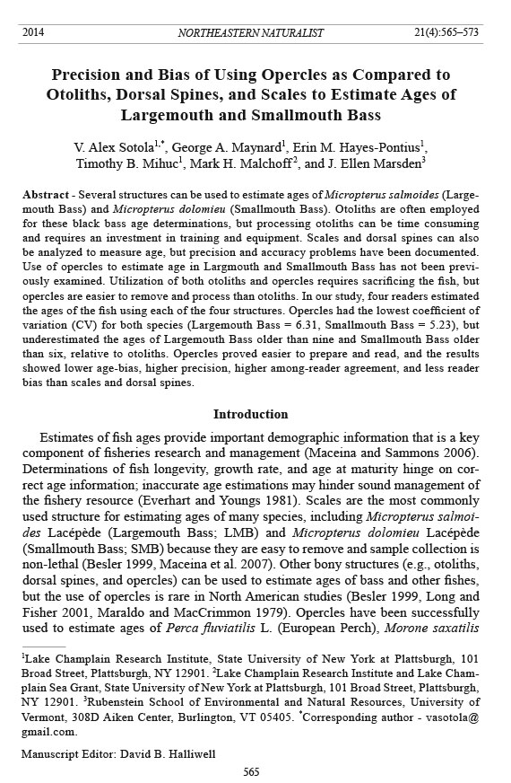 Besler, D.A. 1999. Utility of scales and whole otoliths for aging Largemouth Bass in North