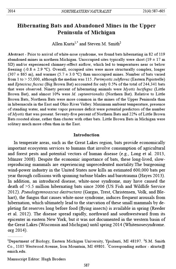 Little information exists on bats in the mines of the Upper Peninsula. Available