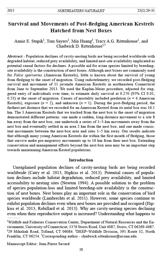 of juvenile American Kestrels during the post-fledging period. Based on existing