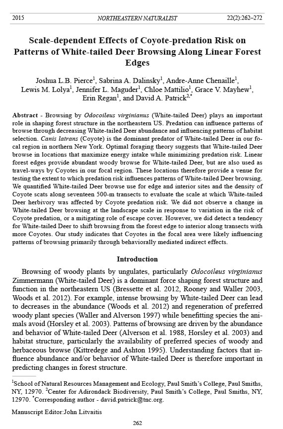 testing the extent to which predation risk influences patterns of White-tailed Deer browsing.