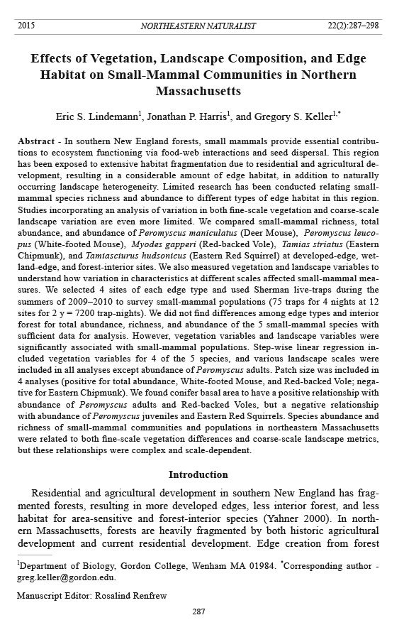 Abstract - In southern New England forests, small mammals provide essential contributions