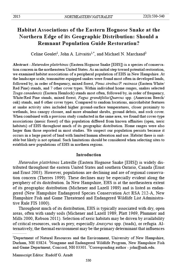 we examined habitat associations of a peripheral population of EHS in New Hampshire. At