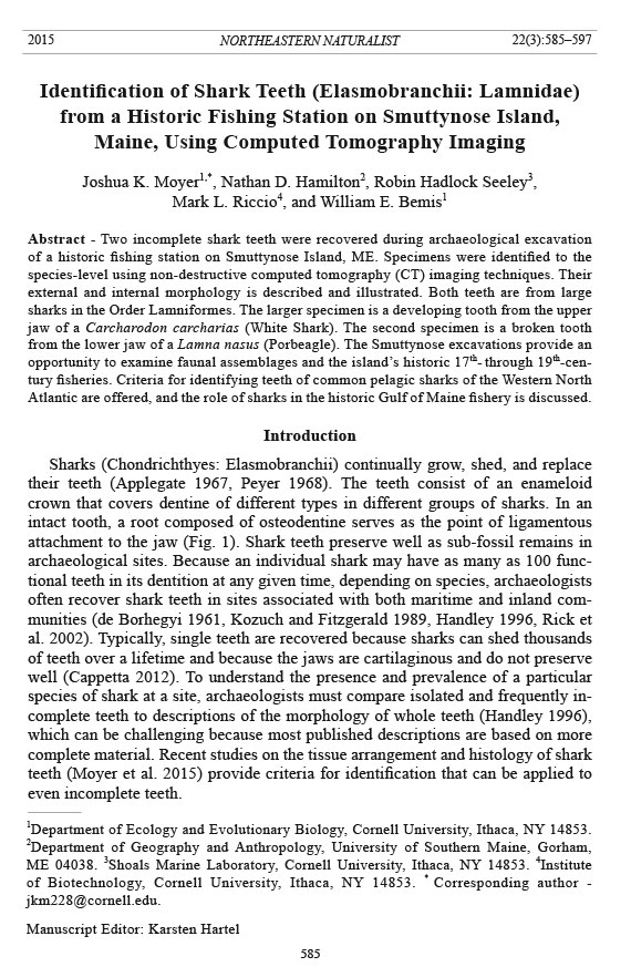 from the lower jaw of a Lamna nasus (Porbeagle). The Smuttynose excavations provide an