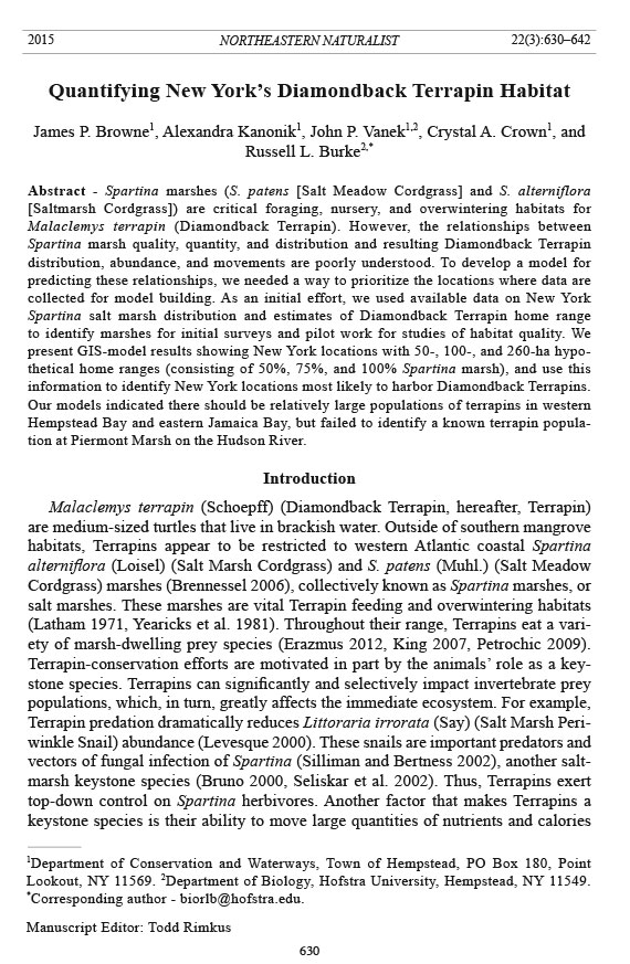 Hempstead Bay and eastern Jamaica Bay, but failed to identify a known terrapin population