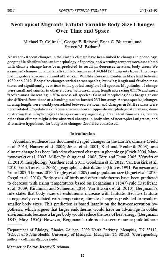 Northeastern Naturalist, Volume 24, Issue 1 (2017): 82–96