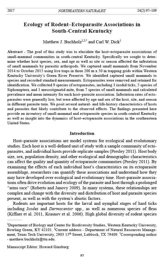 provide an inventory of small-mammal and ectoparasite species in south-central Kentucky
