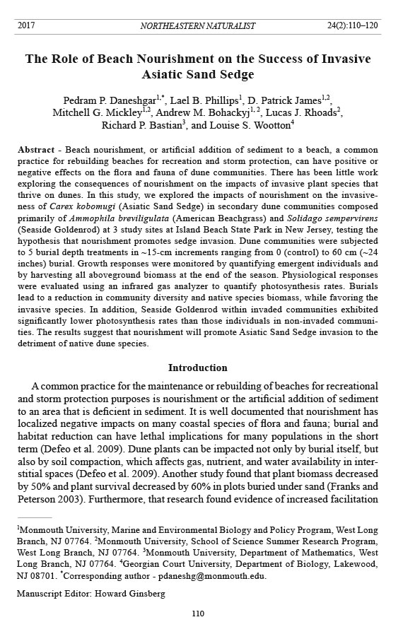 Sedge) in New Jersey’s coastal dunes. Biological Invasions 7:1017–1027.