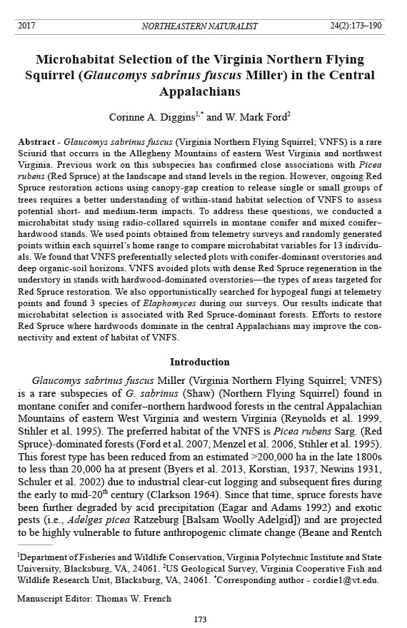 Abstract - Glaucomys sabrinus fuscus (Virginia Northern Flying Squirrel; VNFS) is a rare