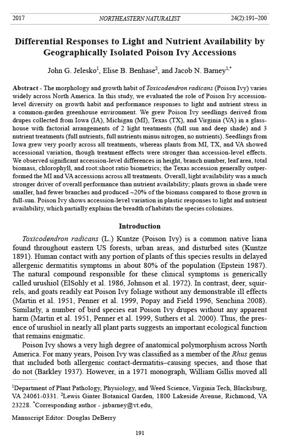 full-sun. Poison Ivy shows accession-level variation in plastic responses to light and nutrient