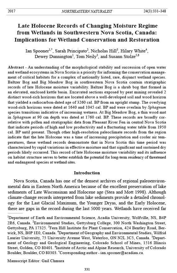1Department of Earth and Environmental Science, Acadia University, Wolfville, NS, B4P