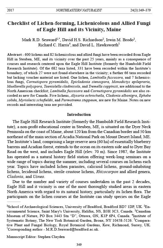Mark R.D. Seaward, David H.S. Richardson, Irwin M. Brodo, Richard C. Harris, and David L. Hawksworth
