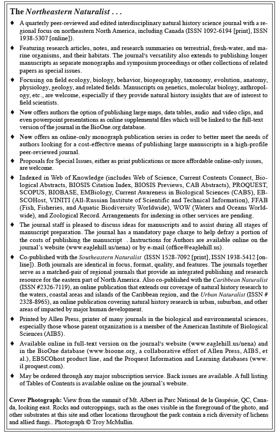 Northeastern Naturalist, Volume 24, Issue 4 (2017)