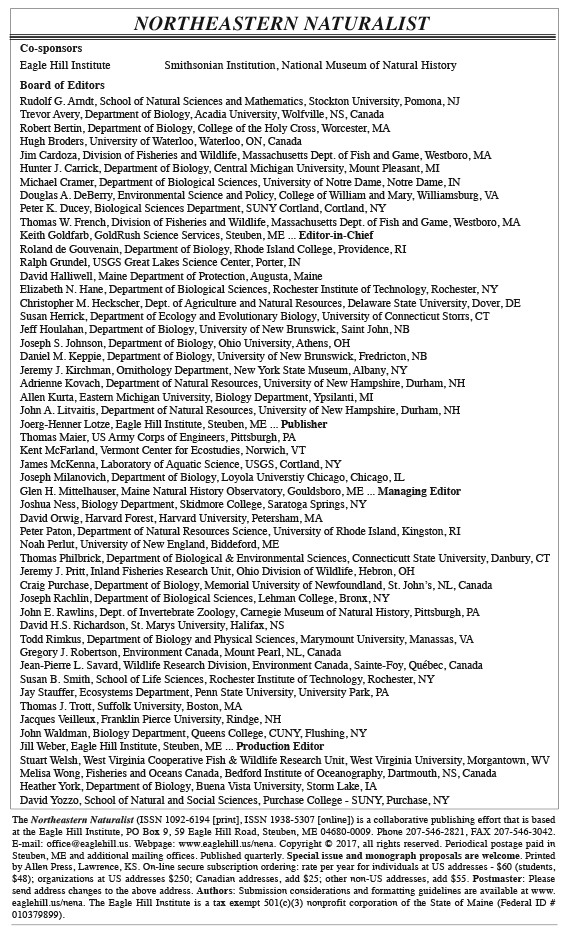 Northeastern Naturalist, Volume 24, Issue 4 (2017)