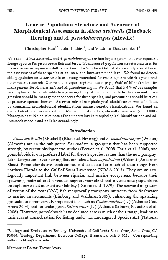 (Alosa pseudoharengus) in Maine rivers. Conservation Genetics 1–15.