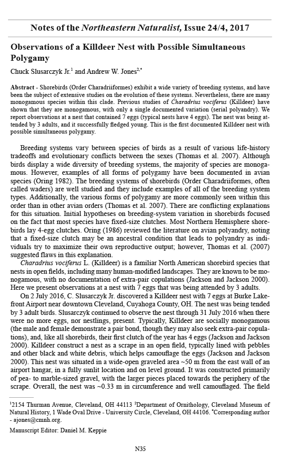 Brunton, D.H. 1988. Sequential polyandry by a female Killdeer. Wilson Bulletin 100:670–672.
