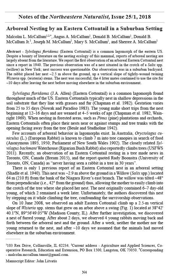 that those studying Eastern Cottontails should consider arboreal settings as potential nesting