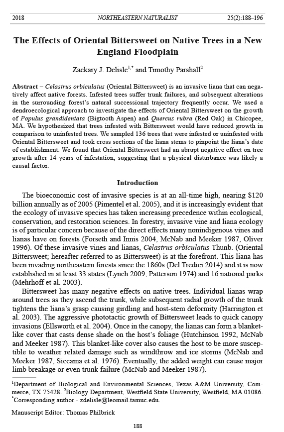 Abstract – Celastrus orbiculatus (Oriental Bittersweet) is an invasive liana that can negatively