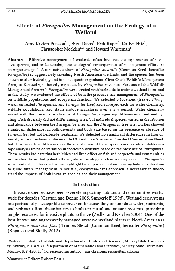 Northeastern Naturalist, Volume 25, Issue 3 (2018): 418–436