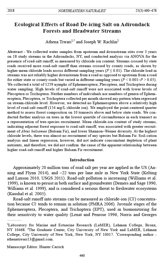In this study, we examined the effects of road-salt runoff on ecosystem health by