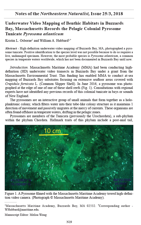 Abstract - High-definition underwater-video mapping of Buzzards Bay, MA, photographed a pyrosome