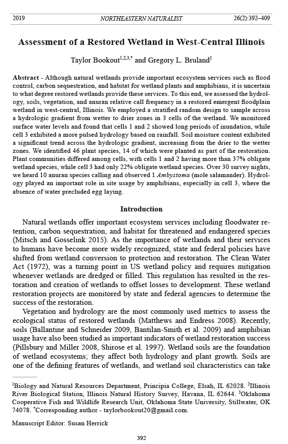 1Biology and Natural Resources Department, Principia College, Elsah, IL 62028. 2Illinois