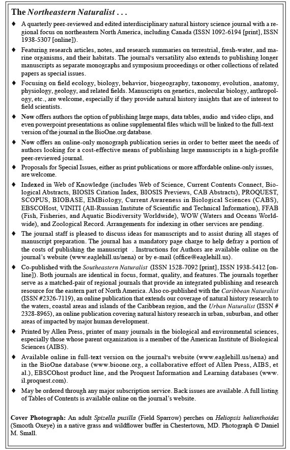 Northeastern Naturalist, Volume 26, Issue 3 (2019)