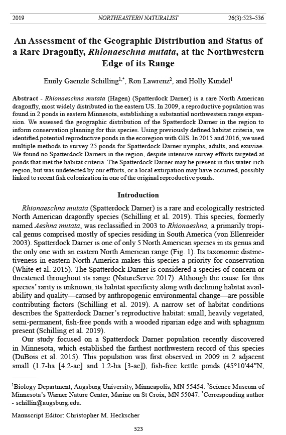 in Minnesota by surveying a subset of ponds for the presence of Spatterdock Darner