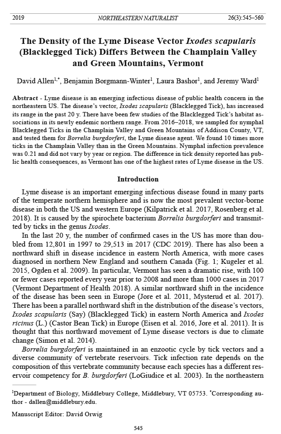 Blacklegged Ticks in the Champlain Valley and Green Mountains of Addison County, VT,