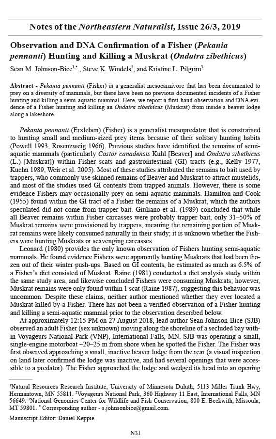 that documented evidence of Fishers apparently hunting Muskrats (Leonard 1980) occurred