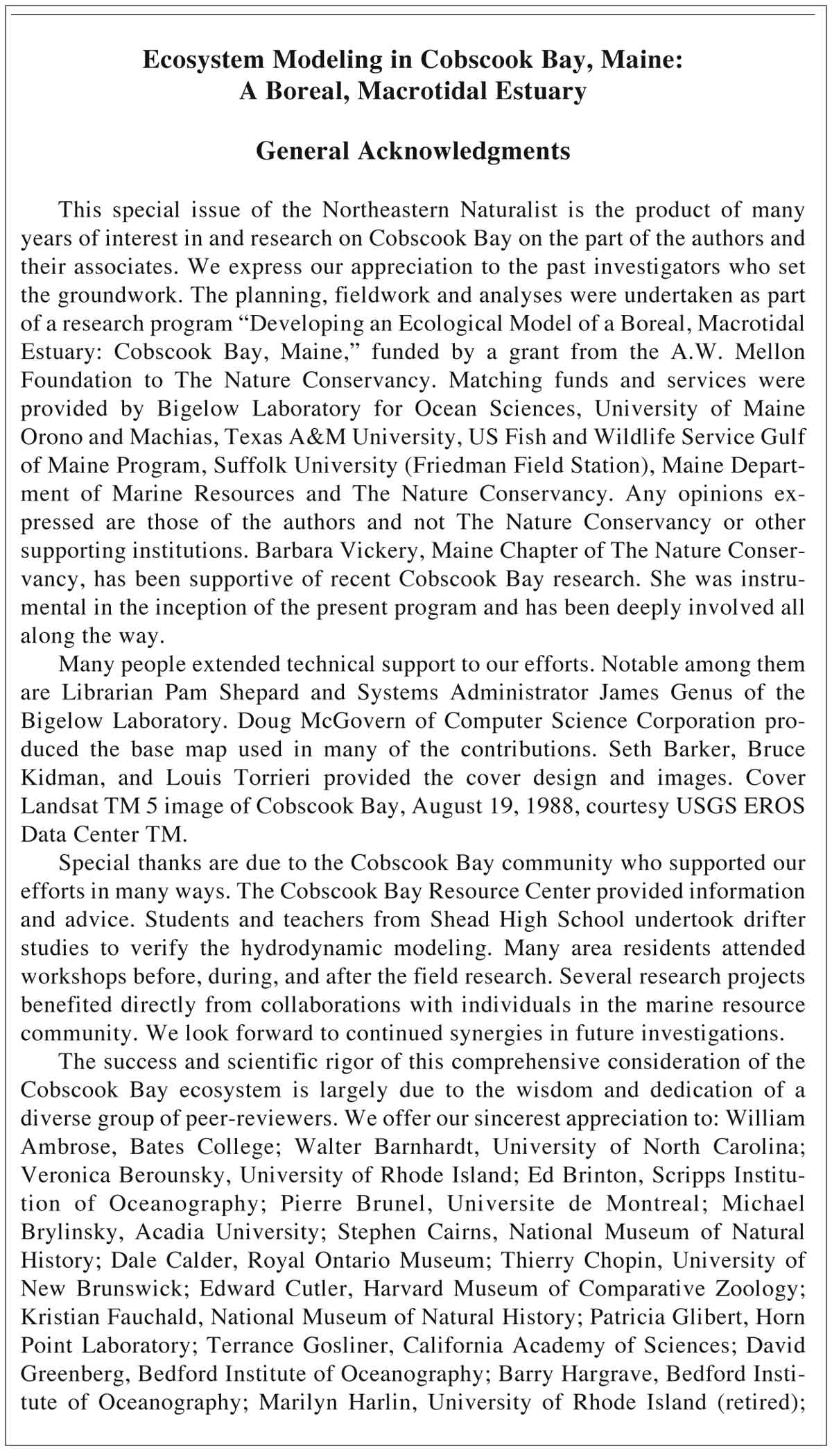 Finally, the printing of this special issue of the Northeastern Naturalist was