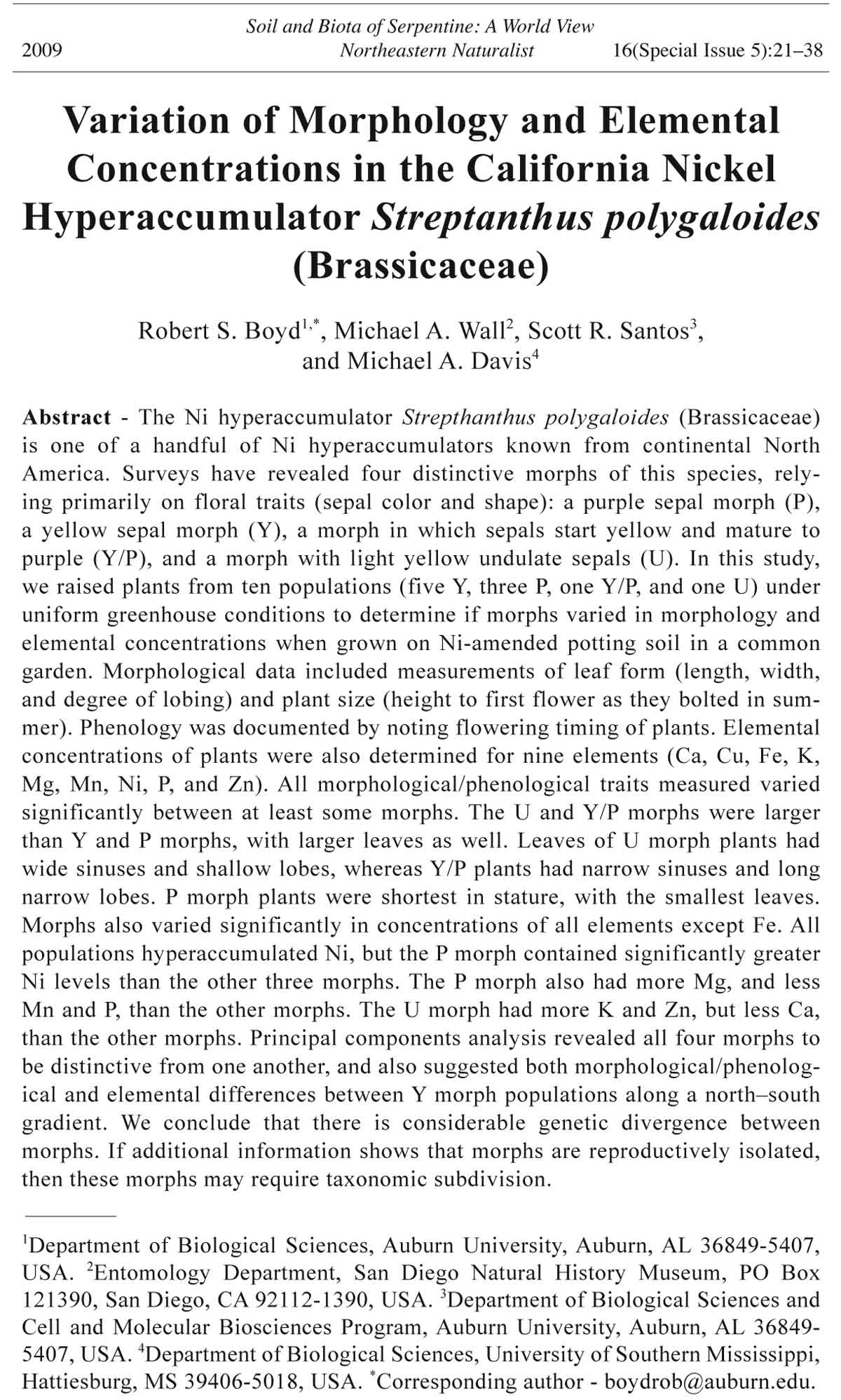 Abstract - The Ni hyperaccumulator Strepthanthus polygaloides (Brassicaceae)