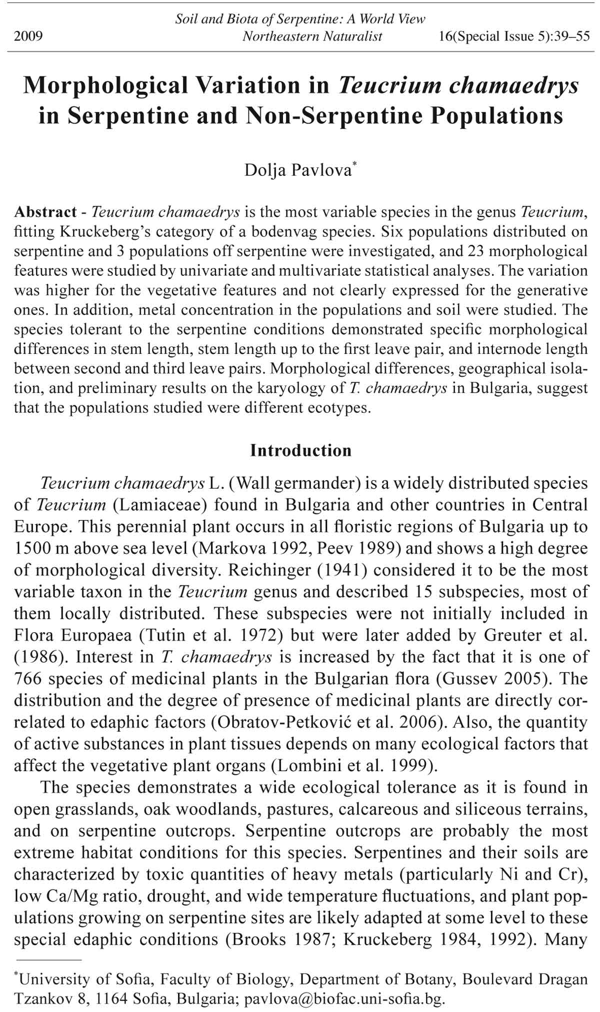 Pavlova, D. 2001. Concentration of heavy metals in plants growing on serpentine