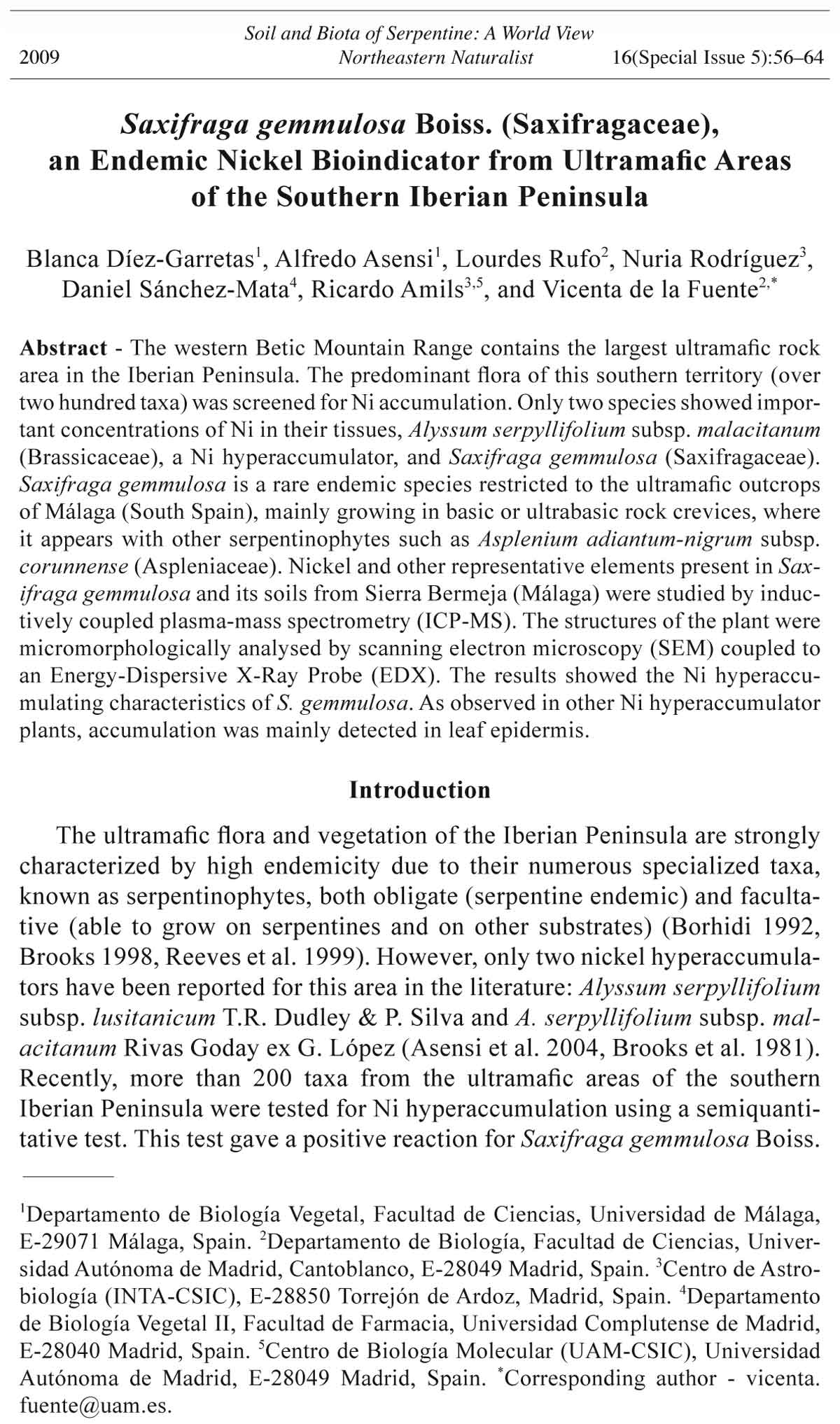 on Iberian peninsula ultramafic flora: A selected nickel accumulation screening.