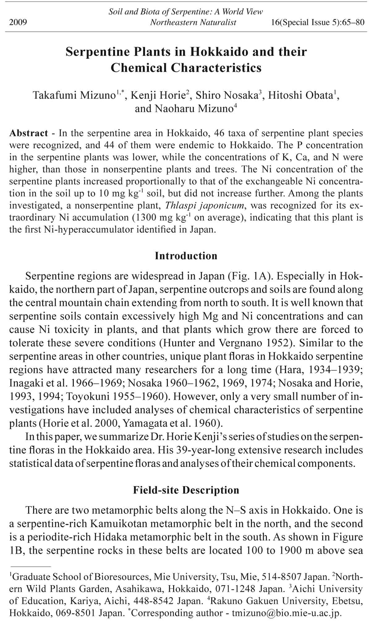 Nosaka, S., and K. Horie. 1994. Synoptic sketch of the serpentine flora of lowland
