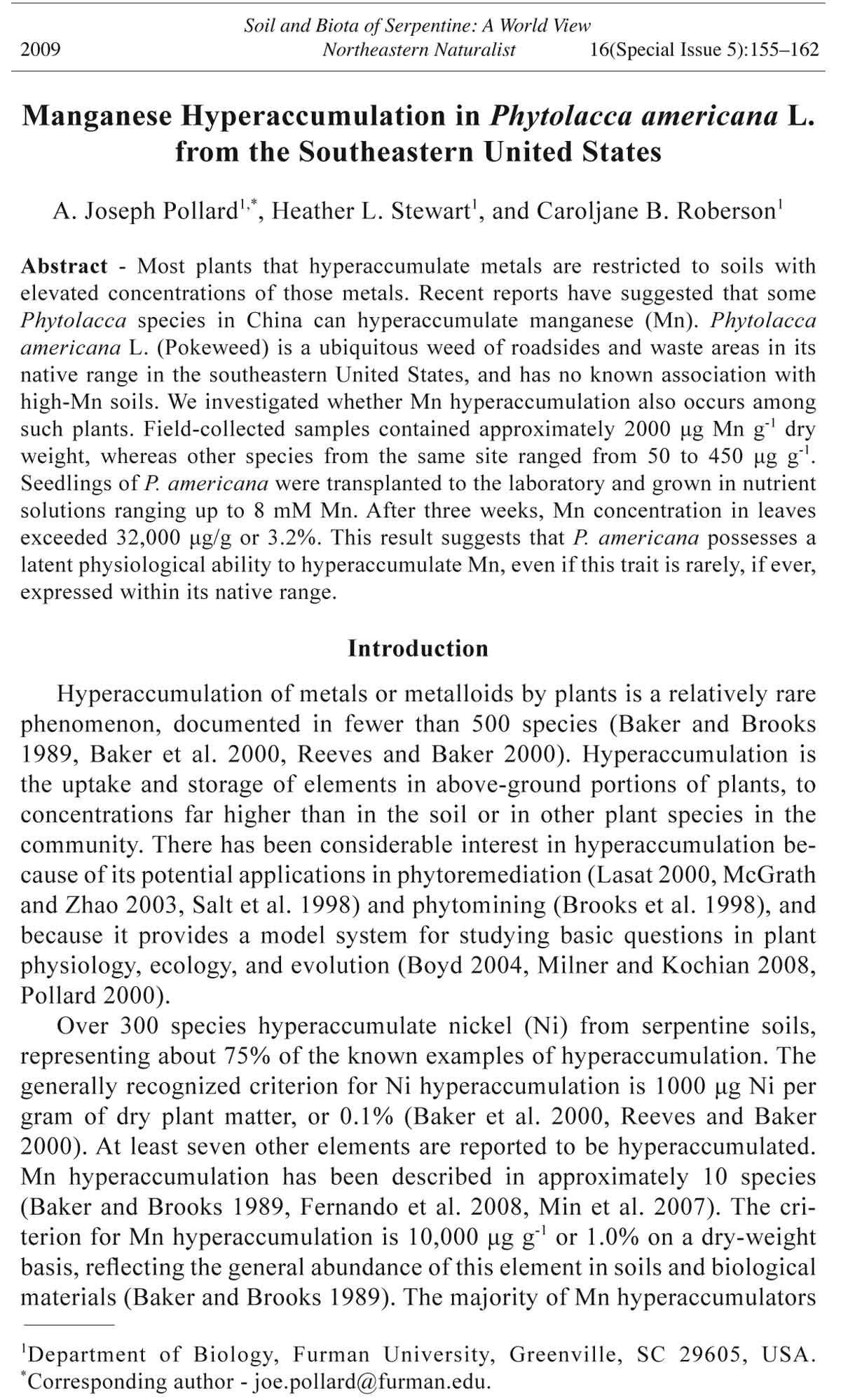 americana L. (Pokeweed) also hyperaccumulates Mn from contaminated