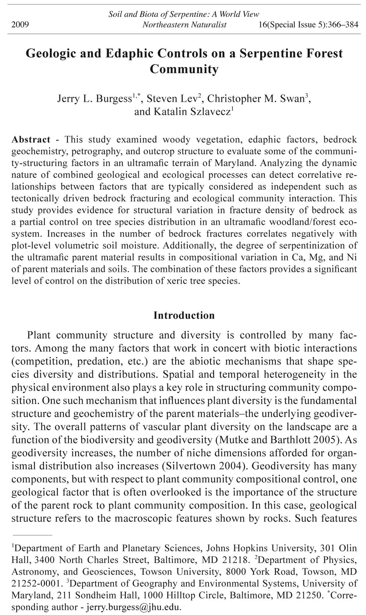 2009 J.L. Burgess, S. Lev, C.M. Swan, and K. Szlavecz 367
