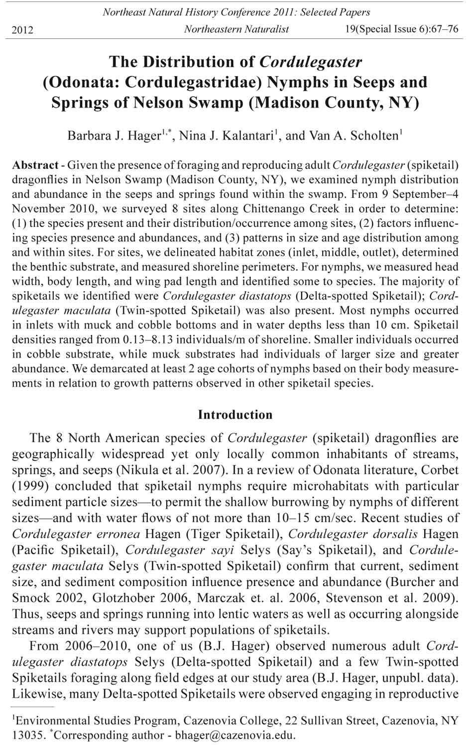 2012 Northeastern Naturalist 19(Special Issue 6):67–76