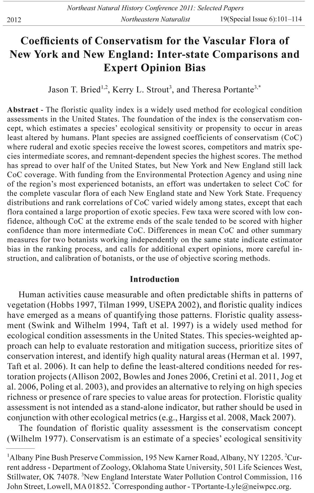 between botanists. It follows closely a presentation delivered at the 2011 Northeast