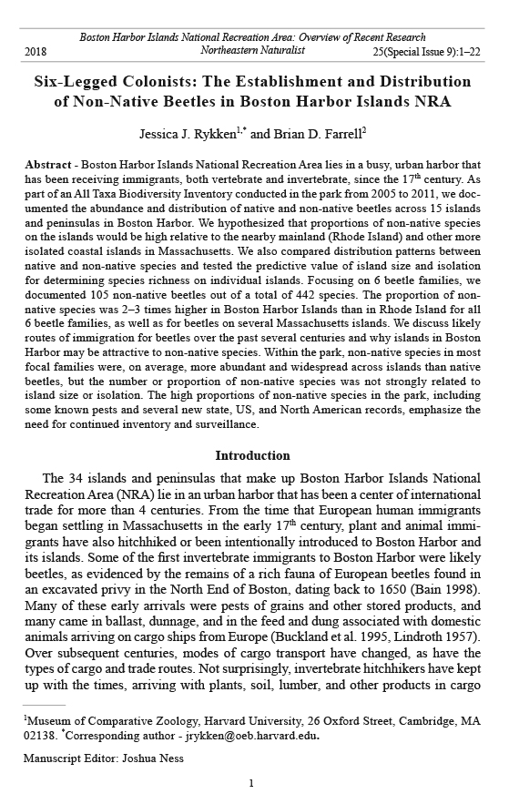 of Non-Native Beetles in Boston Harbor Islands NRA