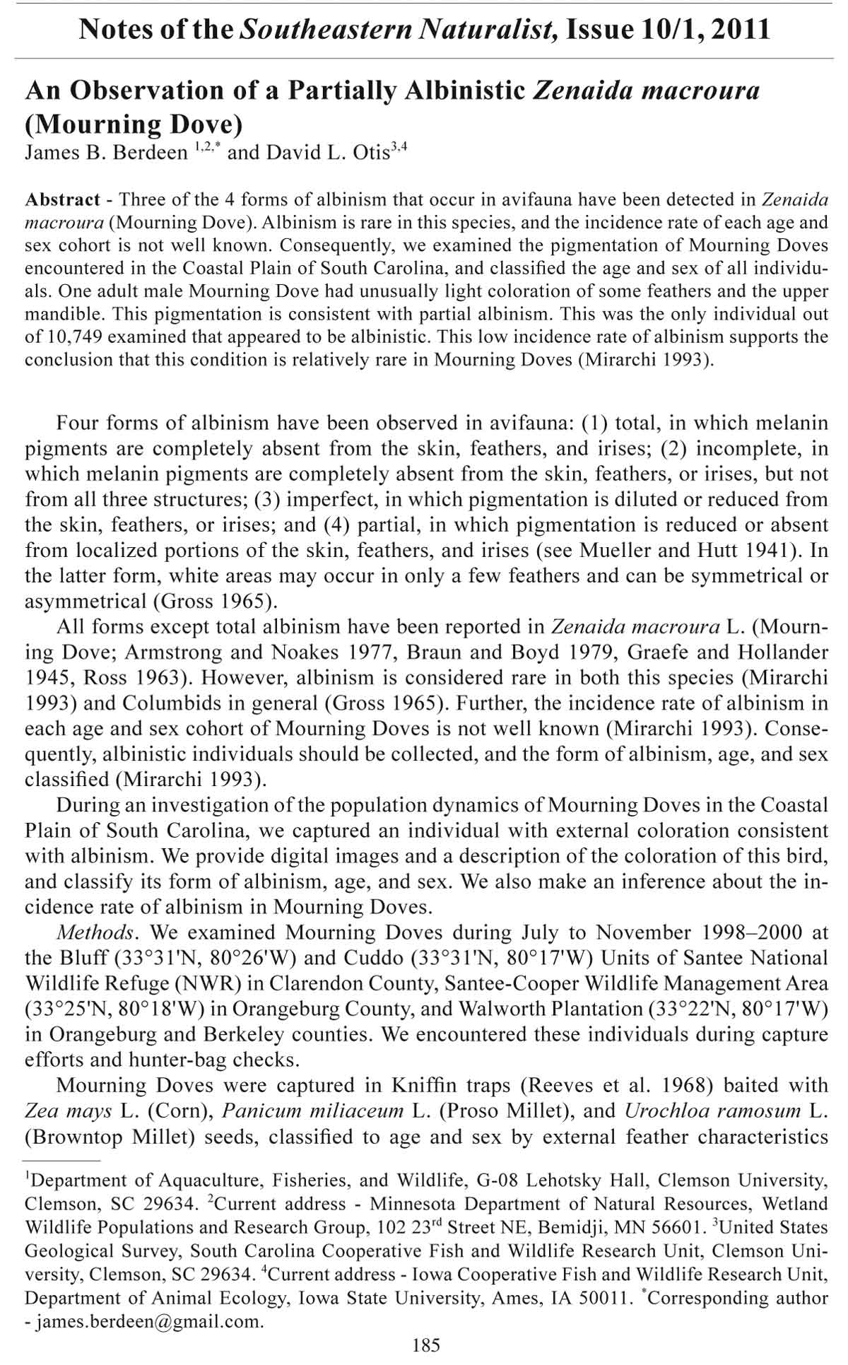 is relatively rare in Mourning Doves. However, the incidence rate of albinism may