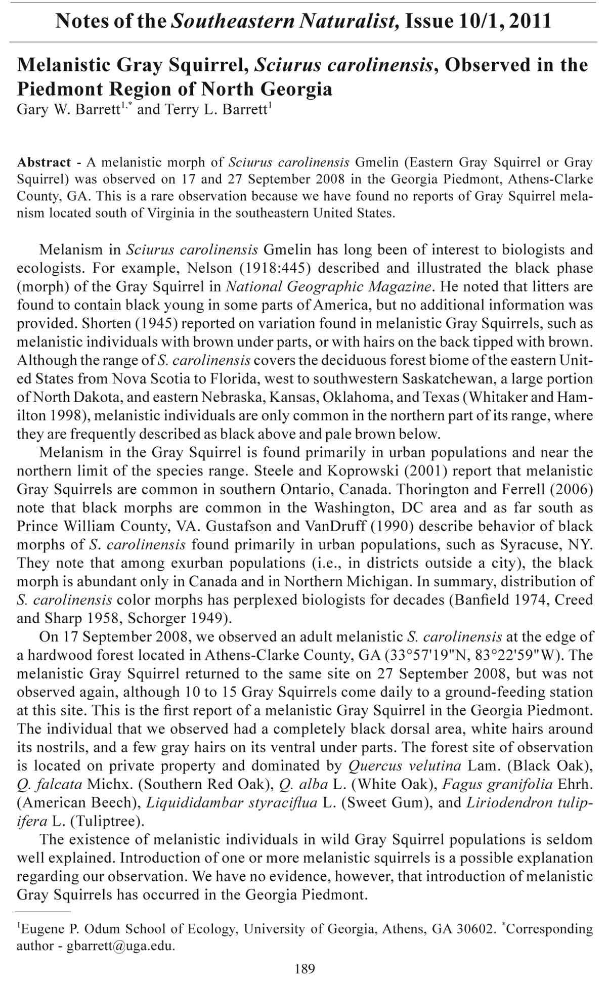 at this site. This is the first report of a melanistic Gray Squirrel in the Georgia Piedmont.