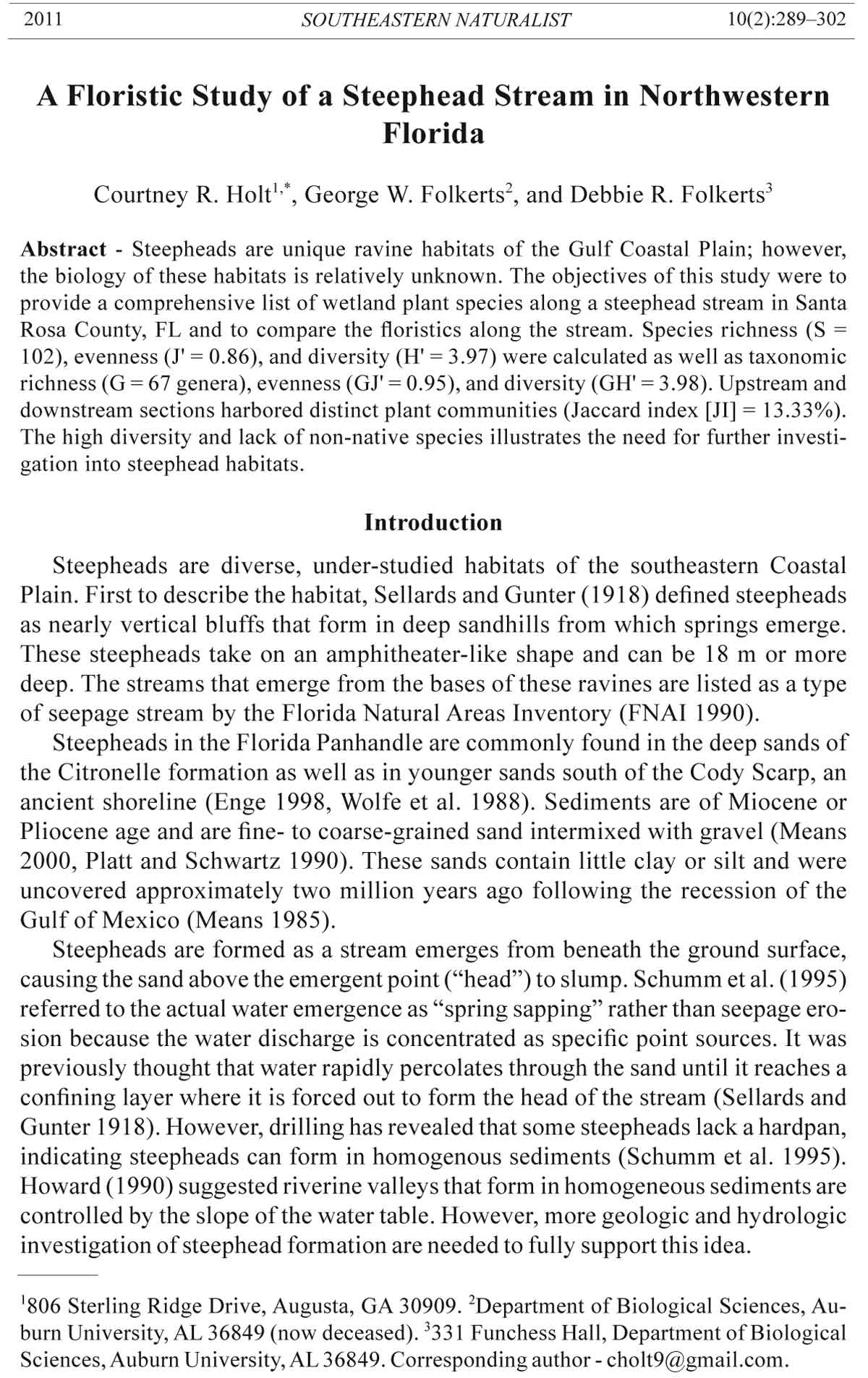 Abstract - Steepheads are unique ravine habitats of the Gulf Coastal Plain; however,