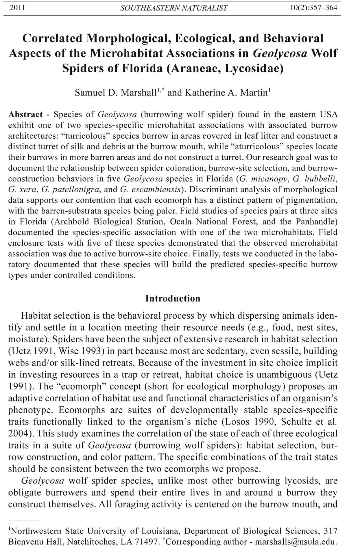 1995a, b; Marshall et al. 2000). Geolycosa from the eastern US appear to exhibit