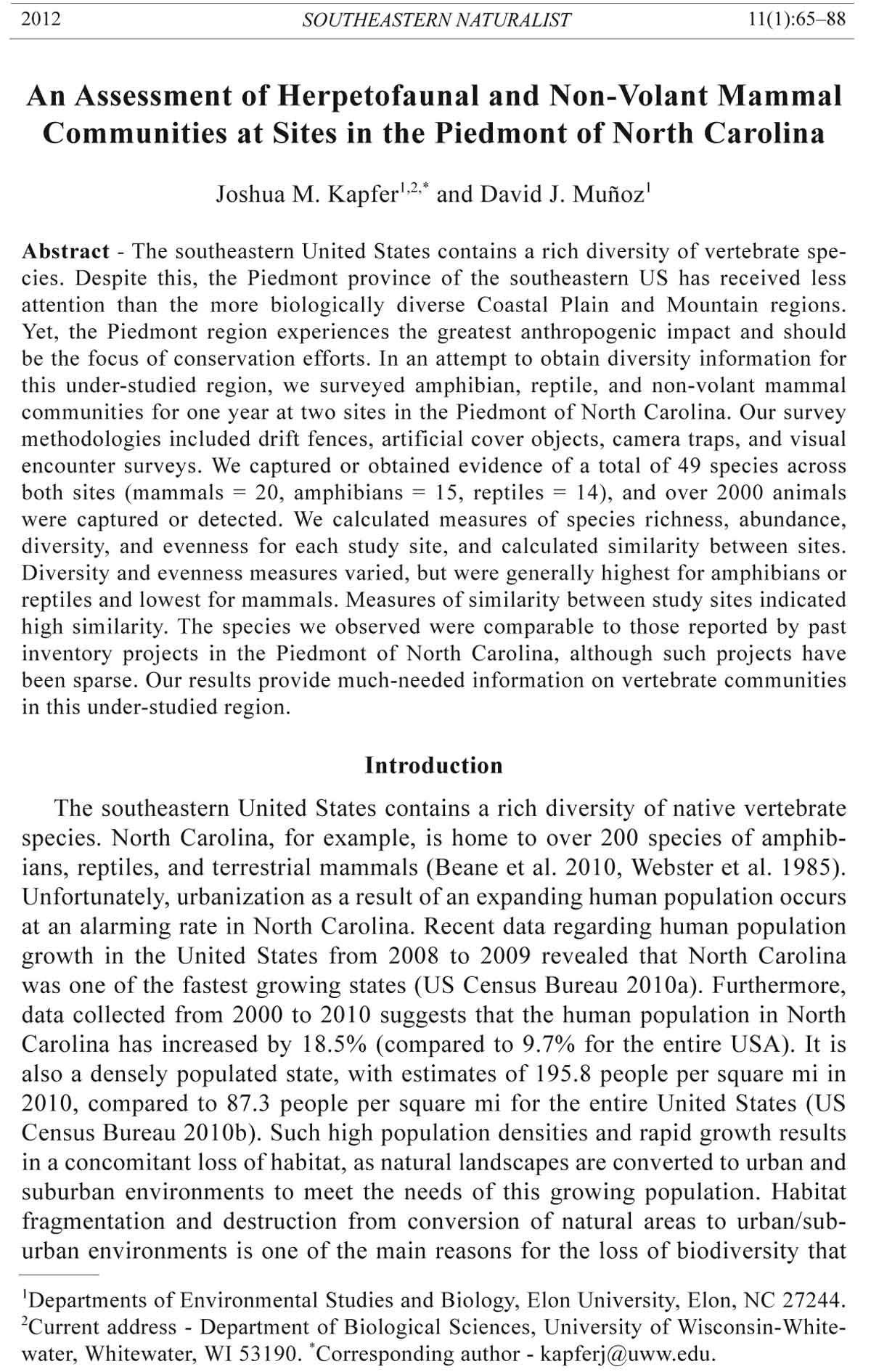 2012 SOUTHEASTERN NATURALIST 11(1):65–88