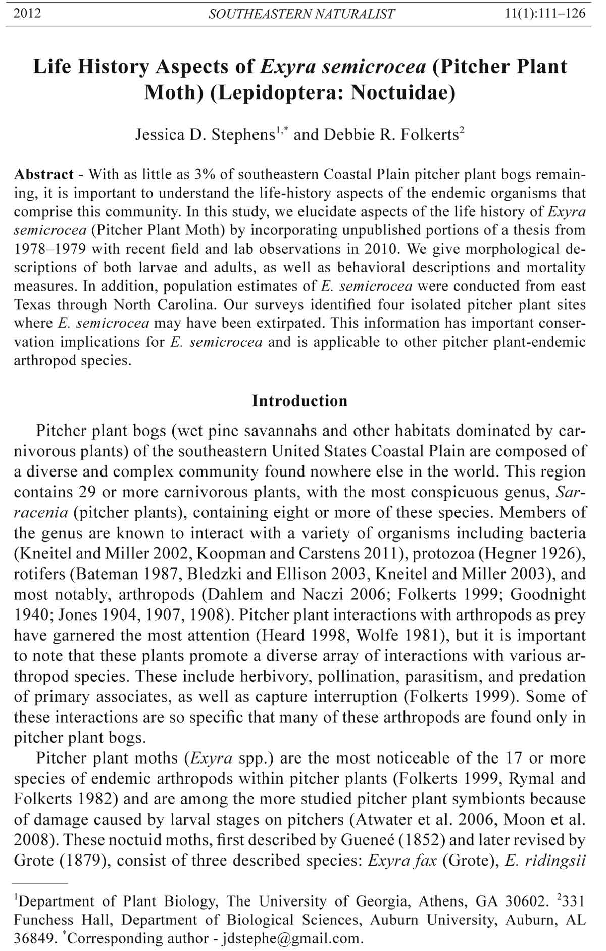 semicrocea (Pitcher Plant Moth) by incorporating unpublished portions of a thesis from