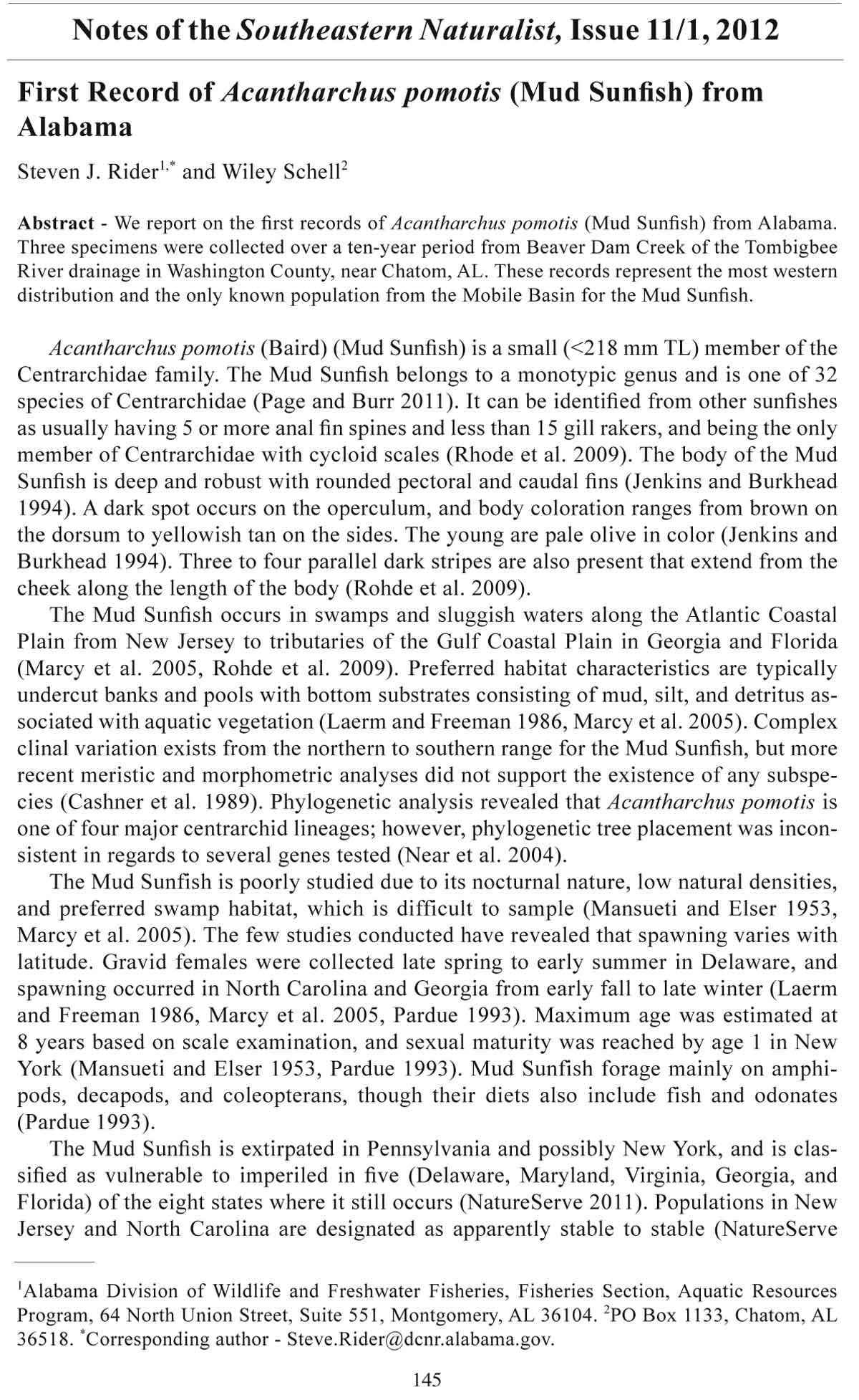 36518. *Corresponding author - Steve.Rider@dcnr.alabama.gov.