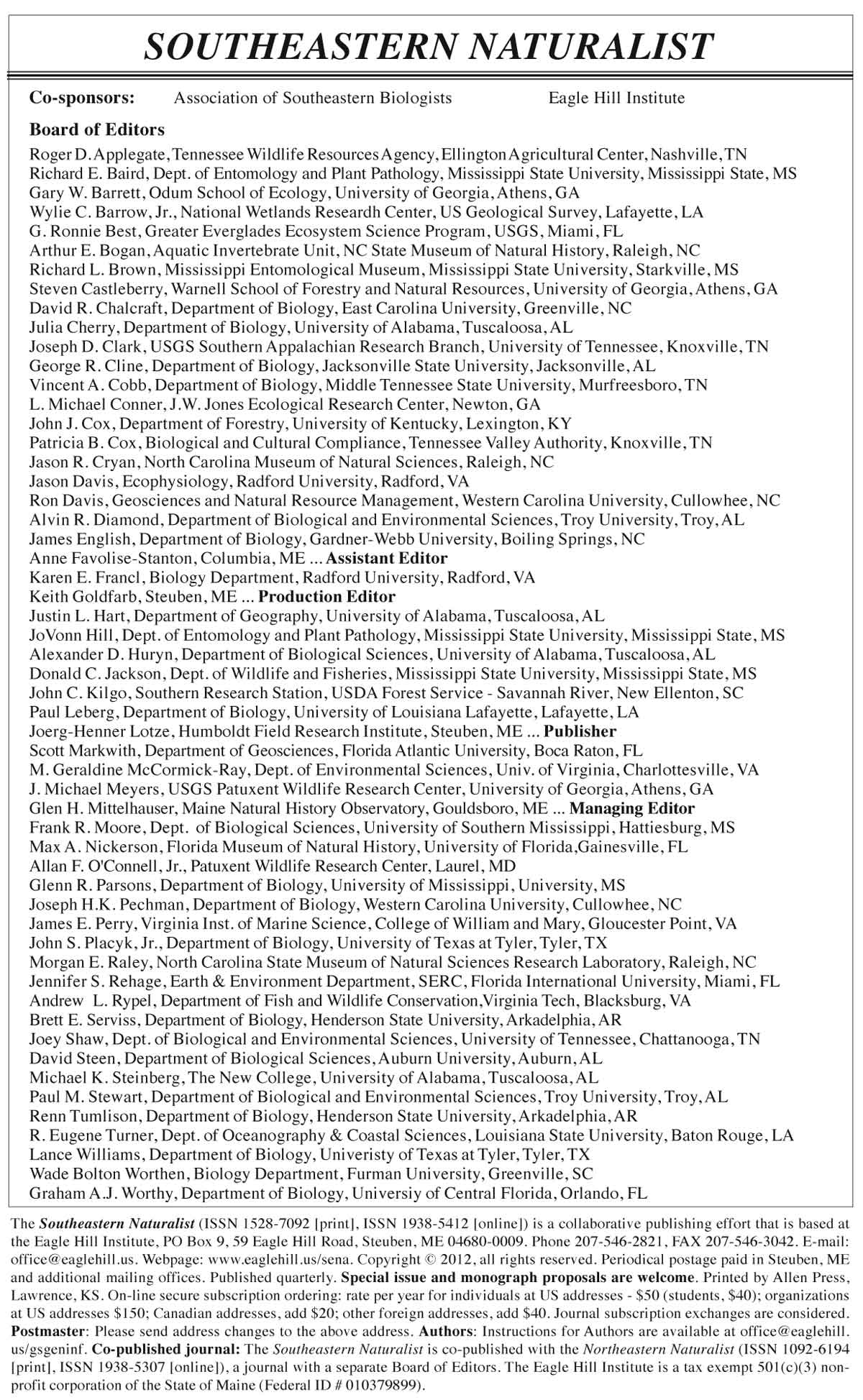 Southeastern Naturalist, Volume 11, Issue 2 (2012)