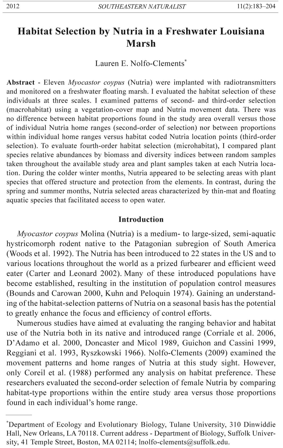the ranging behavior of the Nutria in this study, see Nolfo-Clements (2009). This