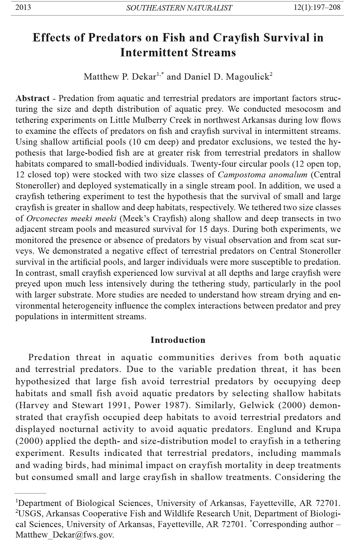 Matthew P. Dekar1,* and Daniel D. Magoulick2