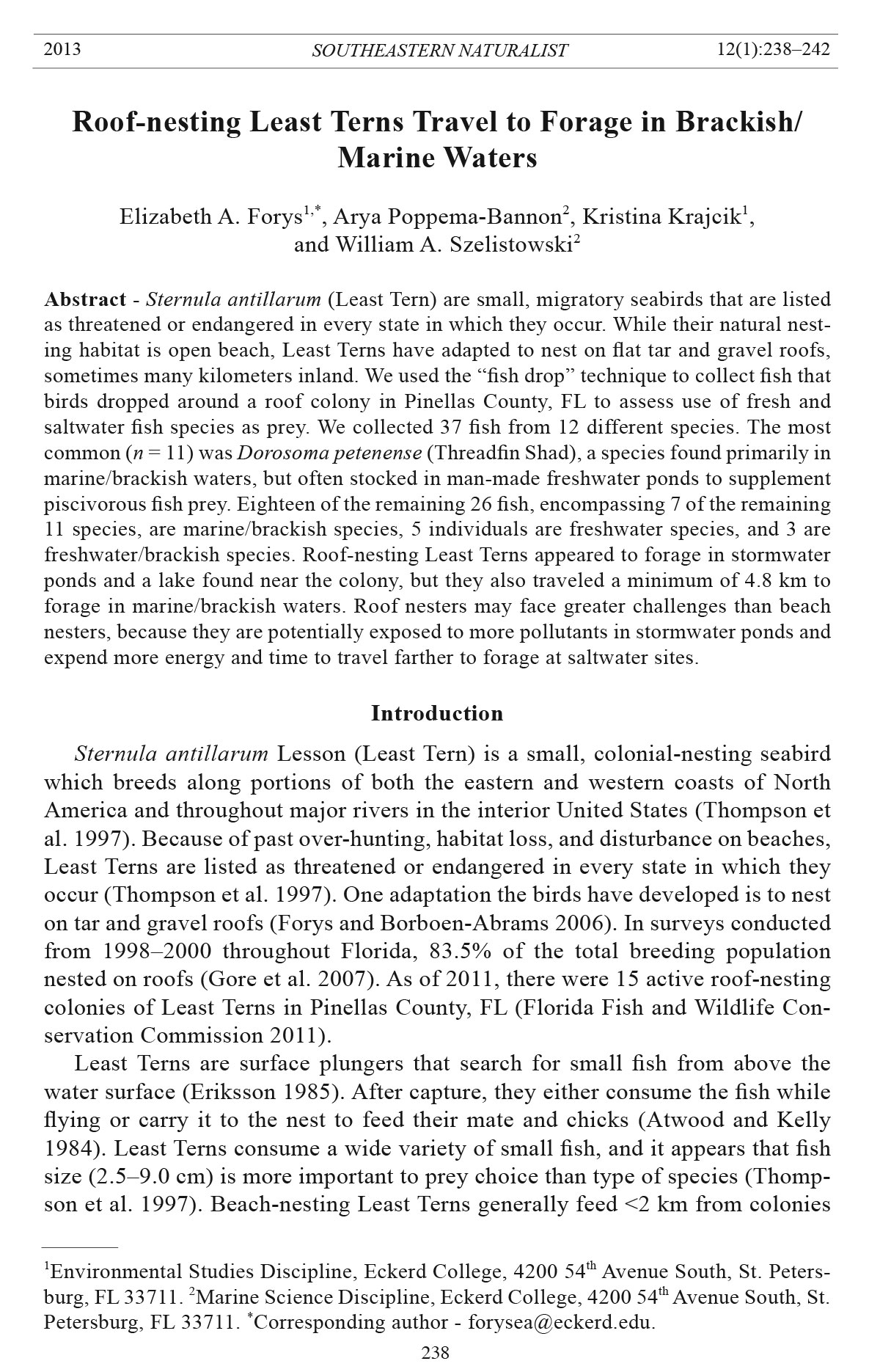 Petersburg, FL 33711. *Corresponding author - forysea@eckerd.edu.